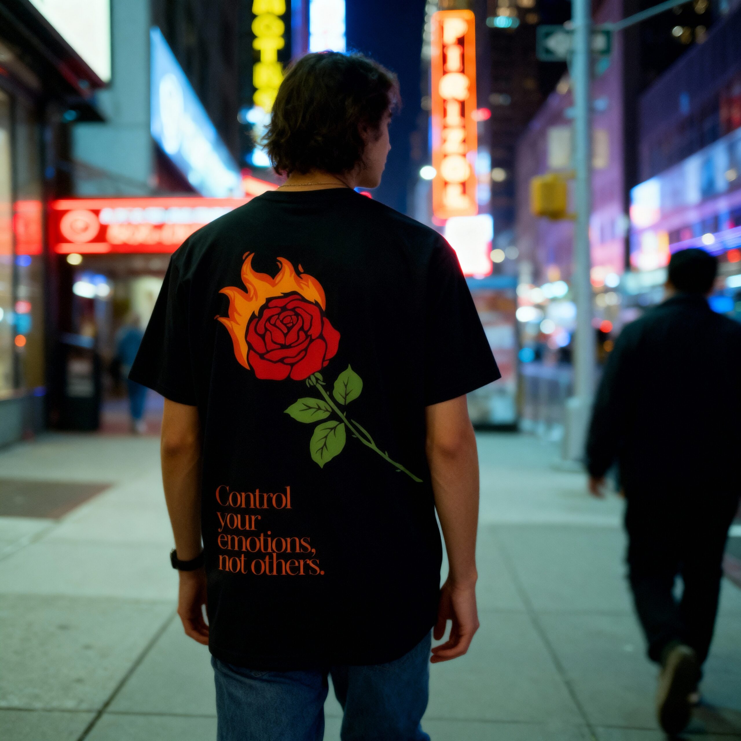 Dizajn: Horiaca ruža ako symbol vášne a sily, doplnená citátom: